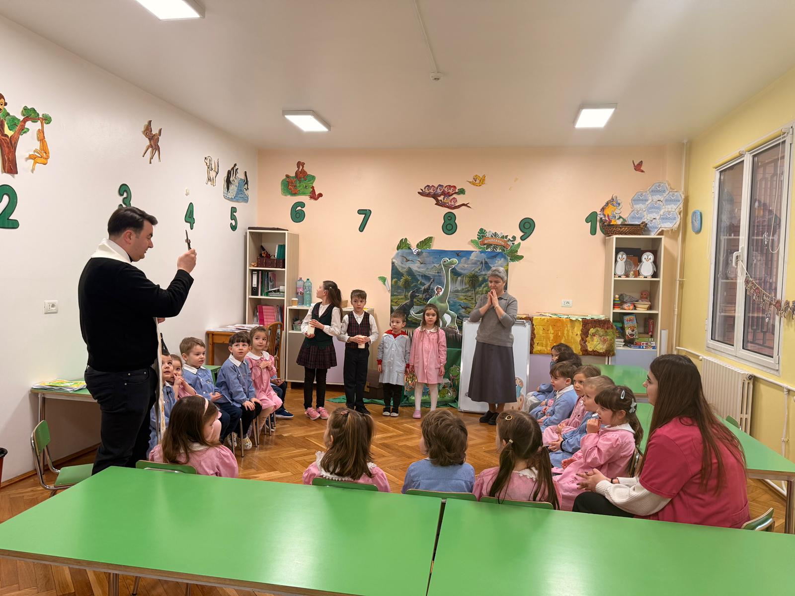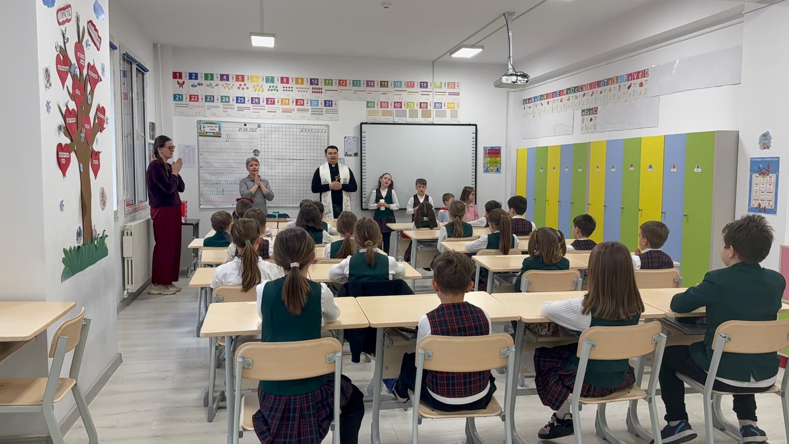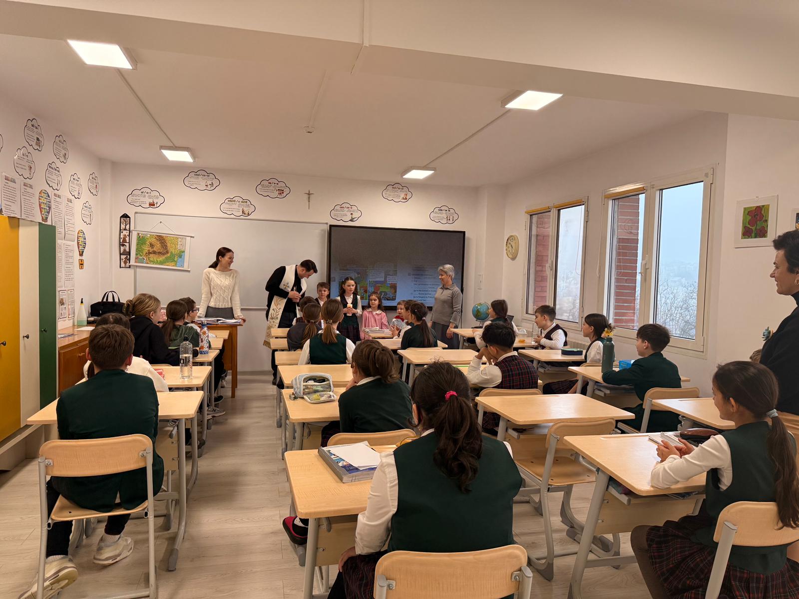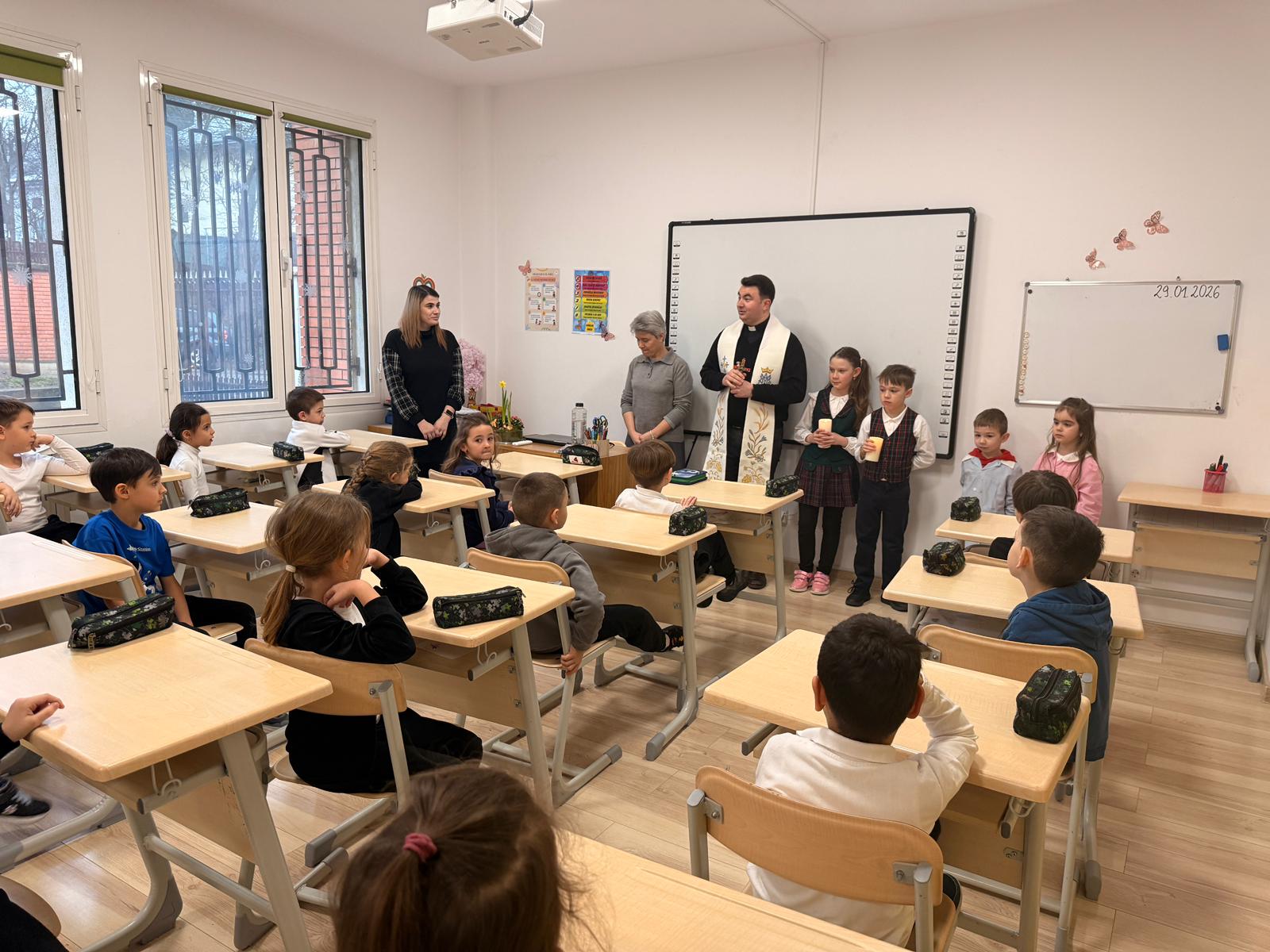 Astăzi, 29.01.2026, în unitatea noastră de învățământ a avut loc binecuvântarea copiilor, a cadrelor didactice și a întregii unități. Preotul Ștefan Simon, vicar al Catedralei Romano-Catolice din Iași, a adus în unitatea noastră binecuvântarea lui Dumnezeu, a rostit rugăciuni pentru sănătate, pace, reușite la învățătură și ocrotire. Mai mult decât atât, pr. Ștefan a interacționat cu preșcolarii și elevii într-o manieră deschisă, caldă și prietenoasă.